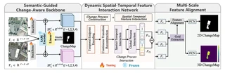 - Semantic-Guided Change-Aware (SGCA) Backbone: Integrates frozen SAM (Segment Anything Model) encoder to provide structured semantic guidance, enhancing feature representation in change regions and suppressing background noise.